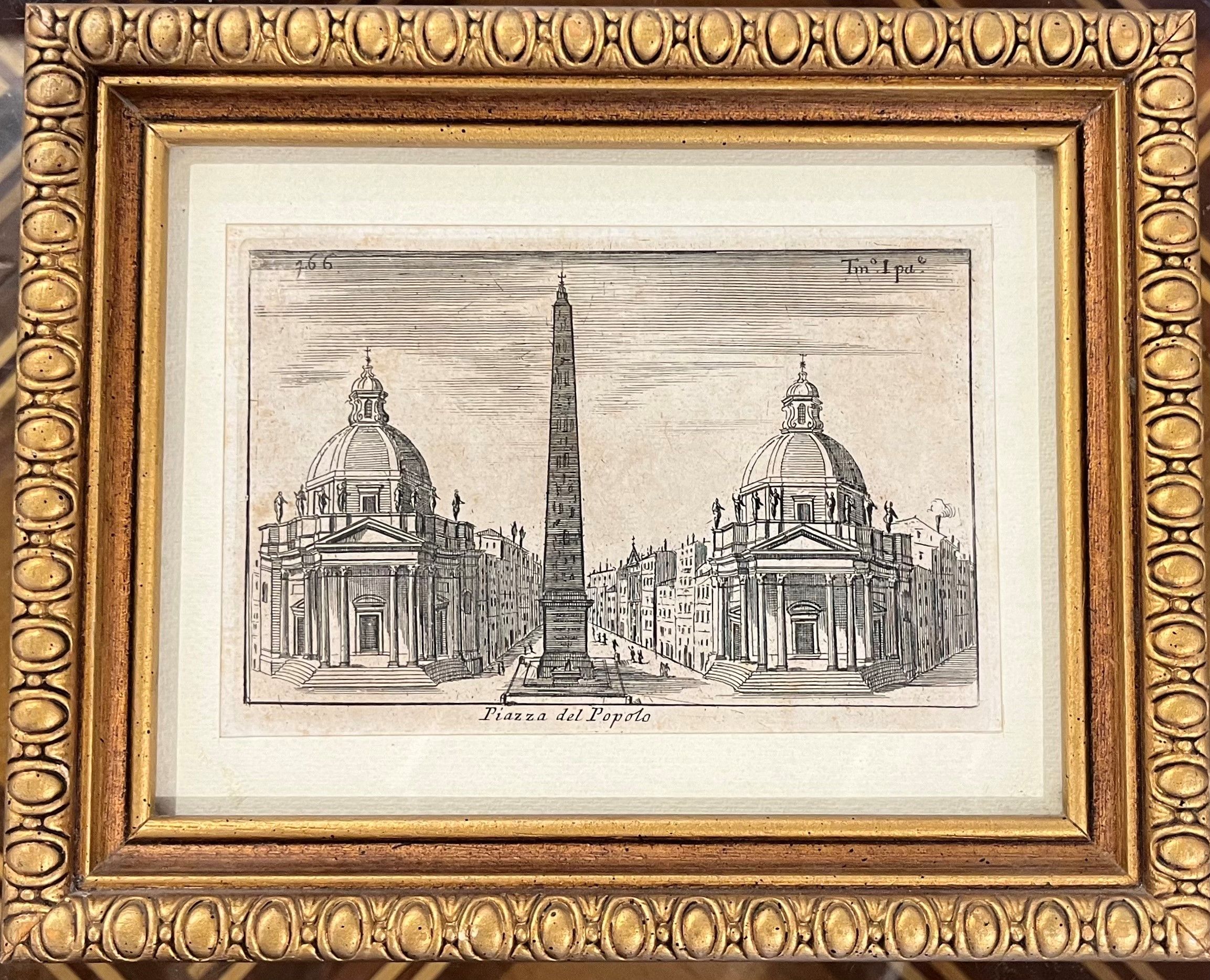 a. Piazza del Popolo, 1765 ca., acquaforte, 120 x 170 mm ca., la stampa non è stata esaminata fuori dalla cornice (20 x 25 x 3 cm) b. Arco di Settimio Severo, acquaforte, 120 x 85 mm ca. Bella impressione. La stampa non è stata esaminata fuori dalla cornice (25 x 18 x 1 cm)