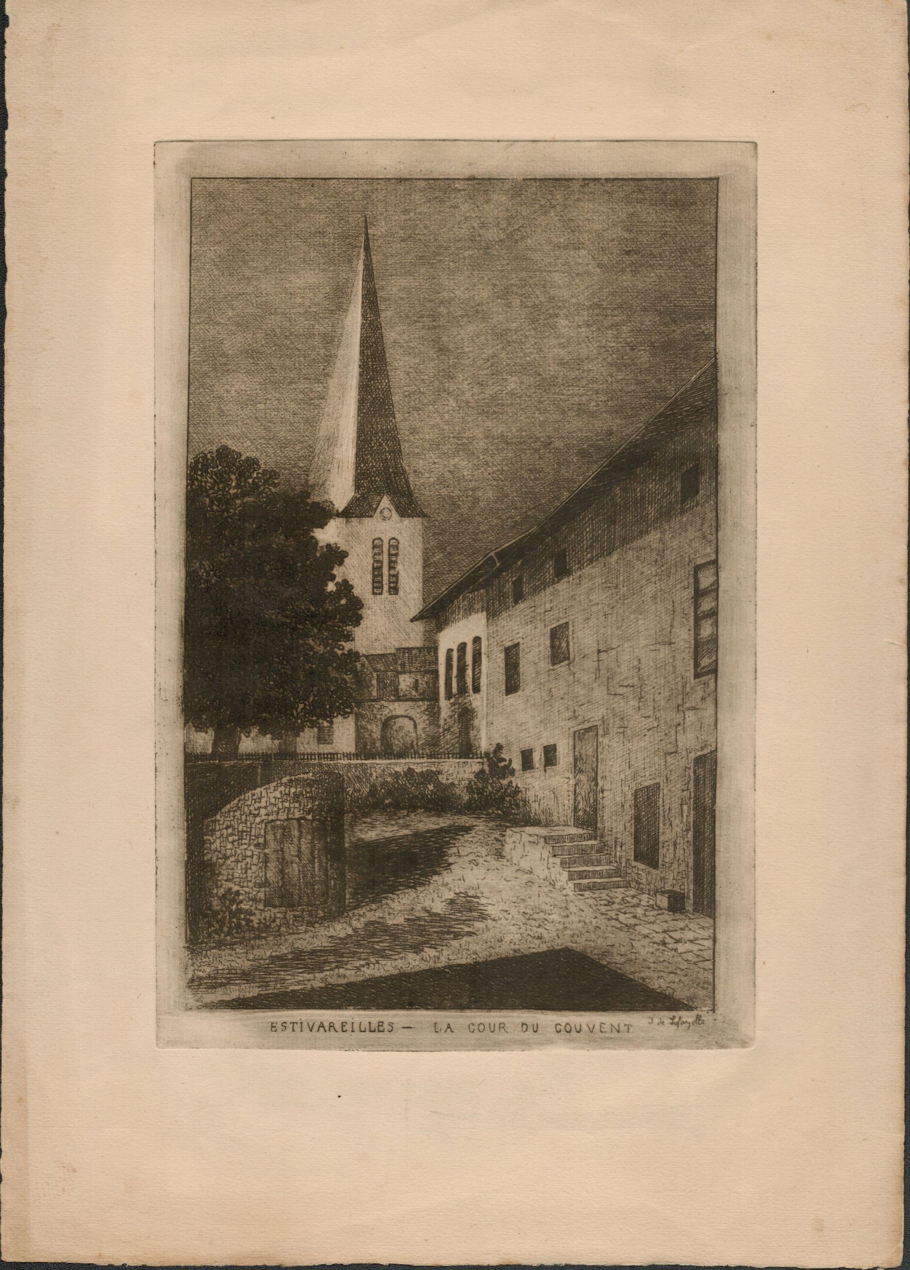 Lotto di due incisioni: a) Estivareilles - La Cour du Couvent. Acquaforte, 256 x 168 mm (lastra); 356 x 252 mm (foglio).. Firmata in lastra in basso a destra. Fresca impressione su carta vergellata moderna con filigrana. Foglio in buono stato. b) VIEUX STARSBOURG Acquaforte, 175 x 133 mm (lastra); 348 x 205 mm (foglio). Firmata in lastra in basso a destra. Fresca impressione su carta non vergellata. Foglio in ottimo stato.