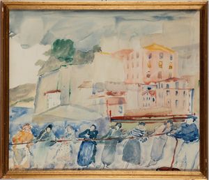 1935 Acquarello su carta, 410 x 480 mm ca. Firma indecifrabile in basso e la data Con cornice (44 x 51 x 3 cm)