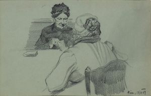 1904 Matita su carta, 135 x 205 mm. Firma indecifrabile e data in basso a destra. Con passe-partout e cornice [..]