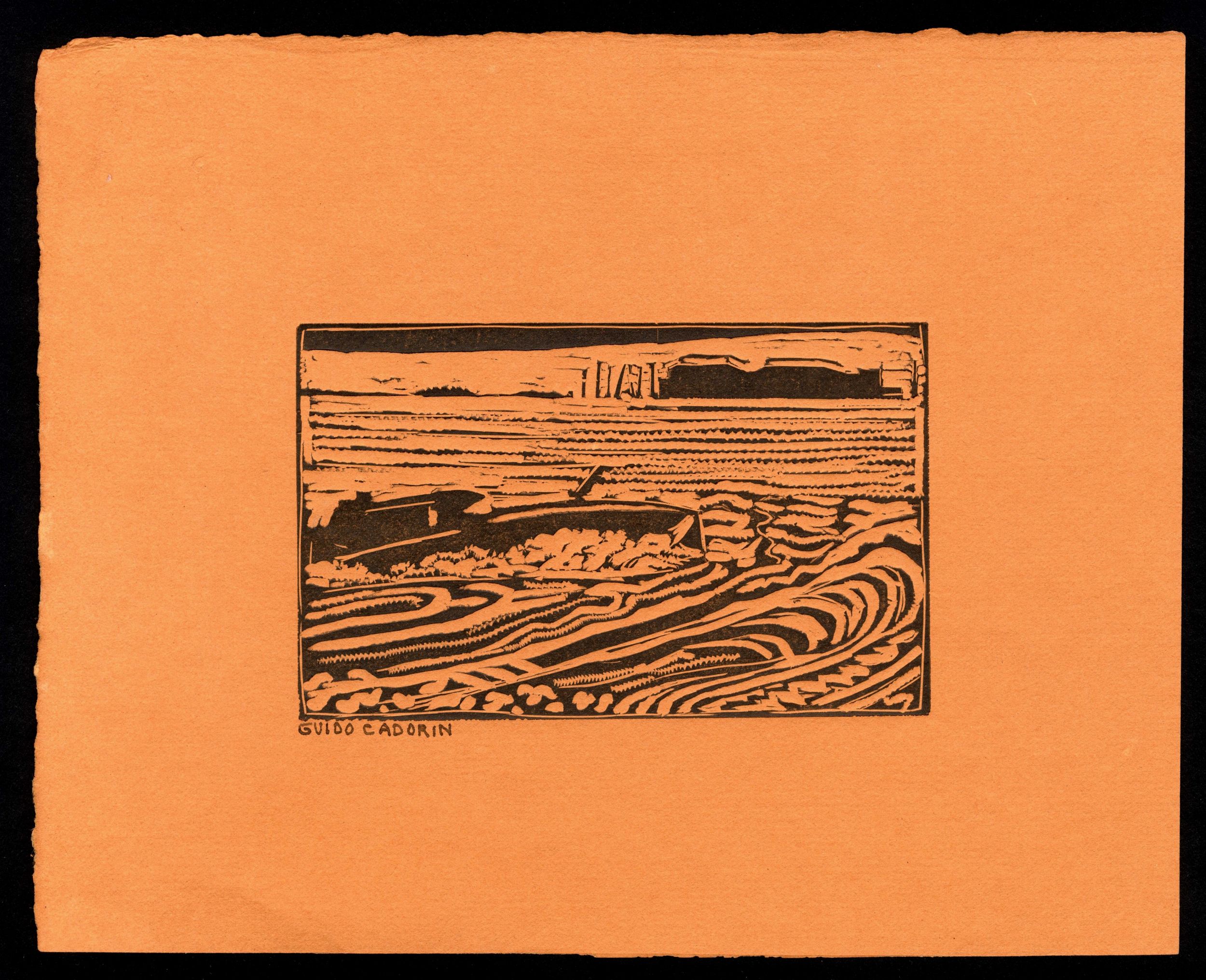 xilografie in nero, su carta color mattone 1) 24x19,2 2)24,2x19,3 3)23,3x15,5 4)23,3x15,5. Guido Cadorin, veneziano nato in una famiglia di artisti, il padre era Vincenzo Cadorin, intagliatore ed ebanista, fin da subito iniziò a frequentare la bottega di famiglia e nel 1907 si iscrisse alla Scuola libera del Nudo di Cesare Laurenti.