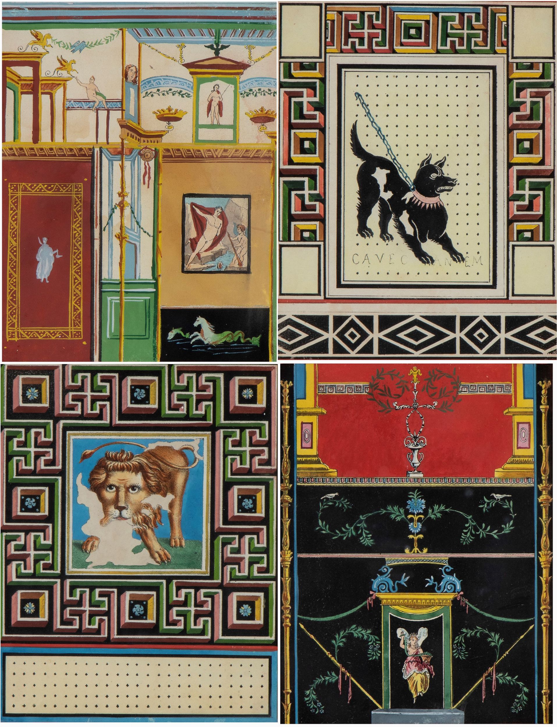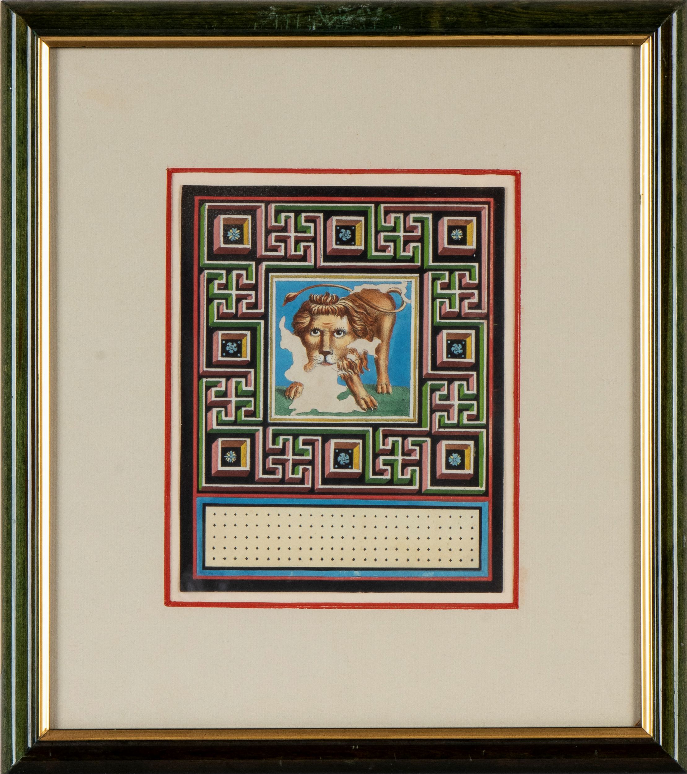 Lotto di 4 litografie colorate a mano a gouache, 195 x 150 mm ca. (cad). In ottimo stato di conservazione, ciascuna con passe-partout e cornice (36 x 32 x 2 cm)