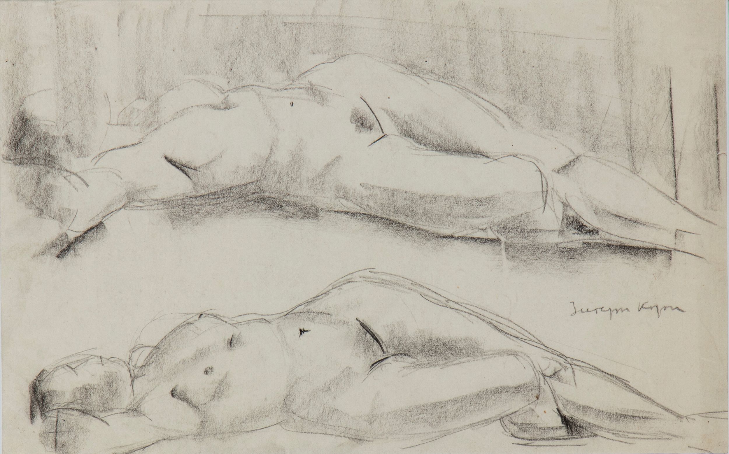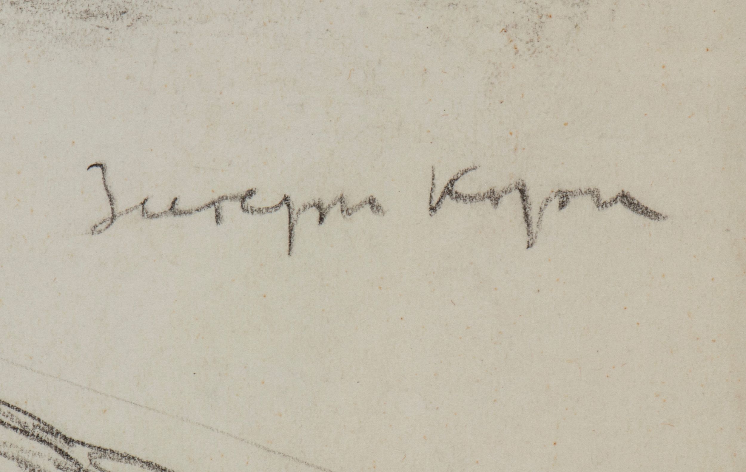 Carboncino su carta, 330 x 205 mm. Con firma indecifrabile. Con passe-partout e cornice (49 x 39 x 2 cm). Senza vetro