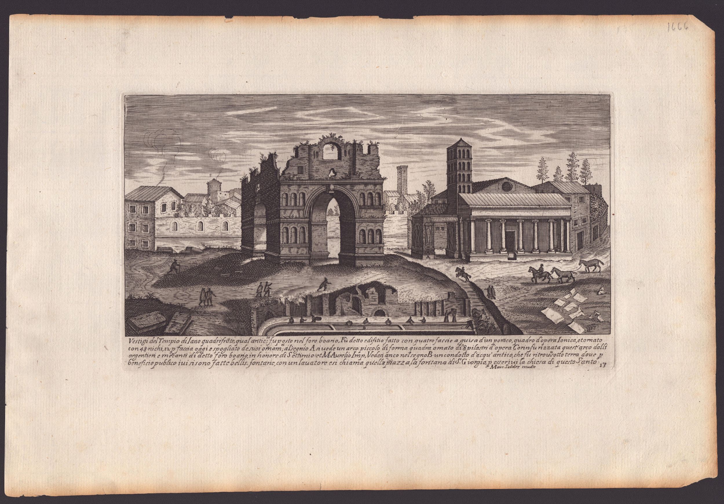 AEGIDIUS SADELER II : Vestigi del tempio di Jano quadrifronte  - Asta Opere su carta. Stampe, disegni, foto d'epoca - Associazione Nazionale - Case d'Asta italiane