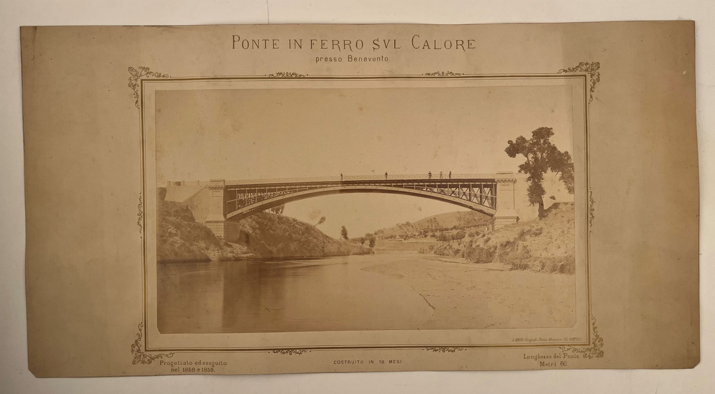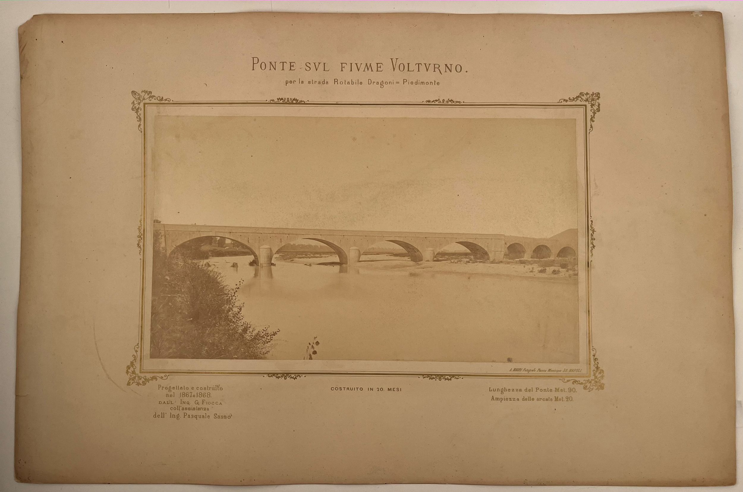 Lotto di quattro grandi stampe all'albumina realizzate da fotografo Achille Mauri, applicate a cartonato intestato e con indicazioni dei luoghi. Condizioni buone, un cartonato è stato ridotto sul margine basso. Stampa 38 x 22 cm, cartonato 63 x 42 cm.