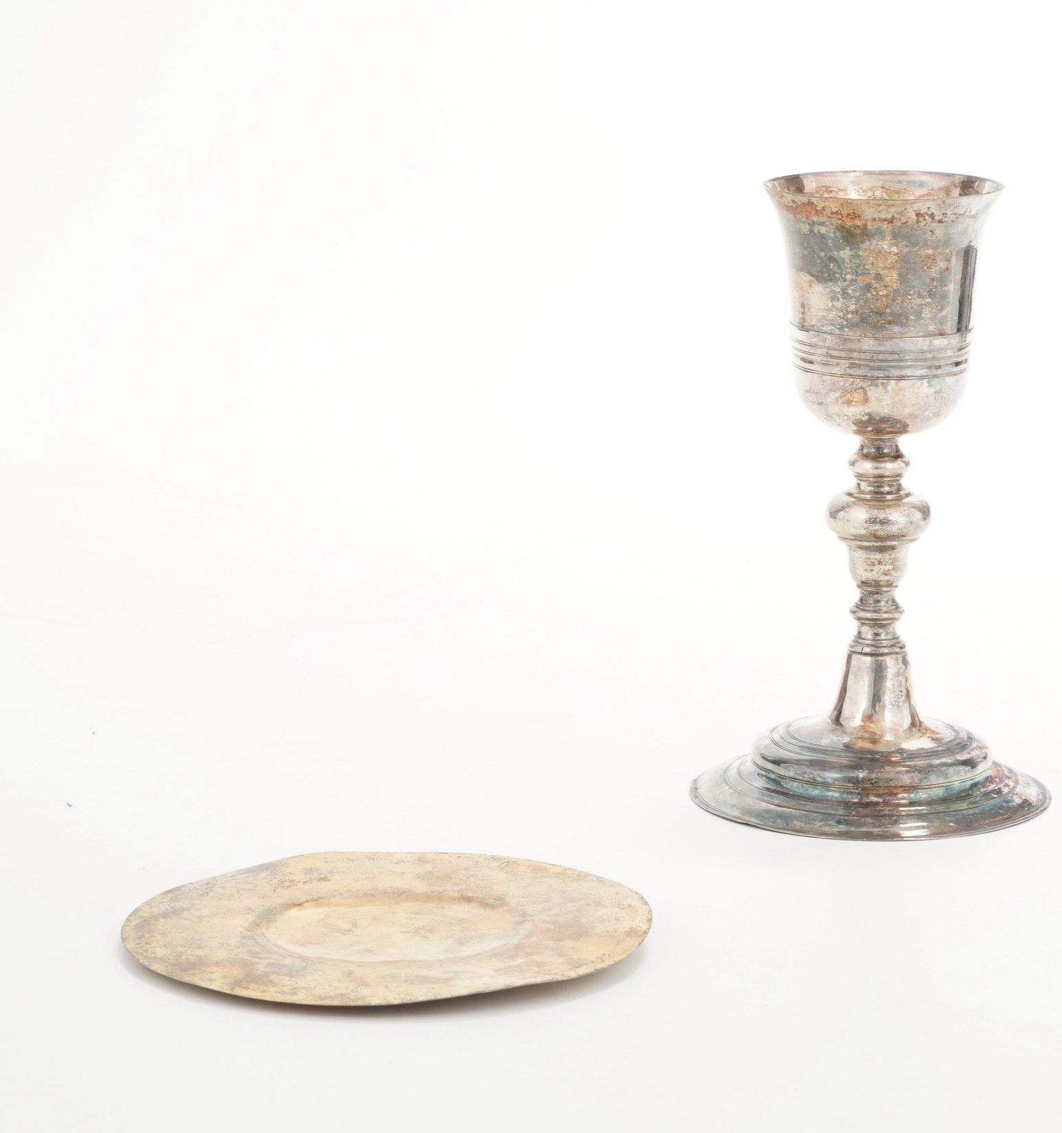 Calice eucaristico e piattino in metallo argentato. XIX-XX secolo