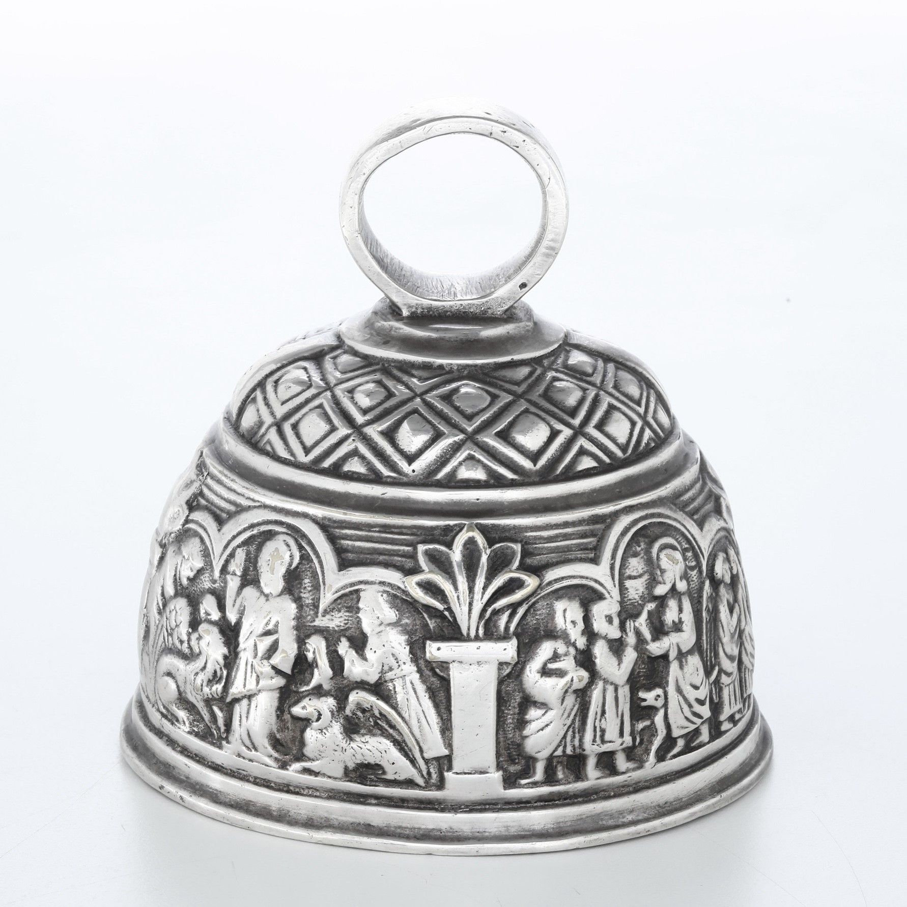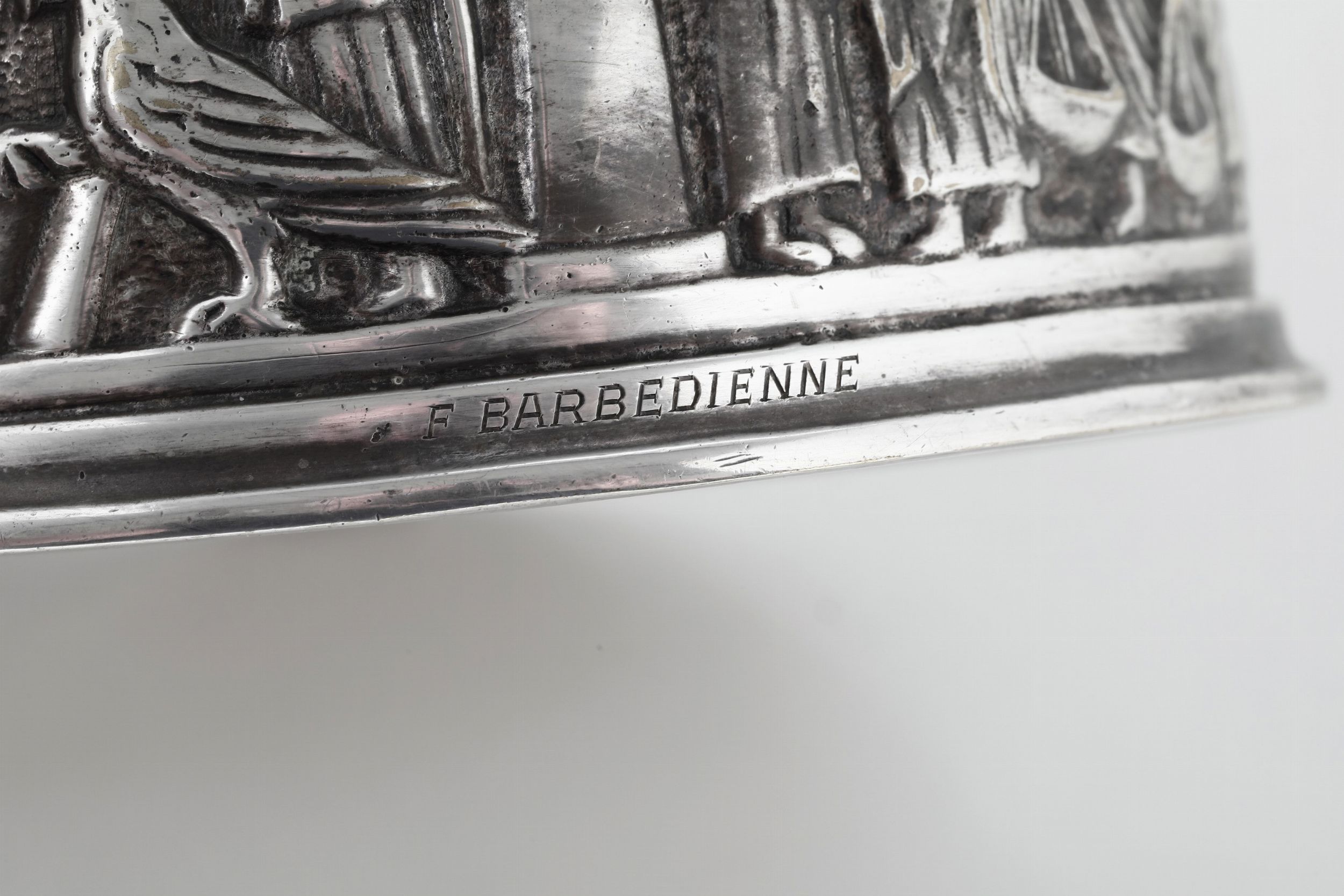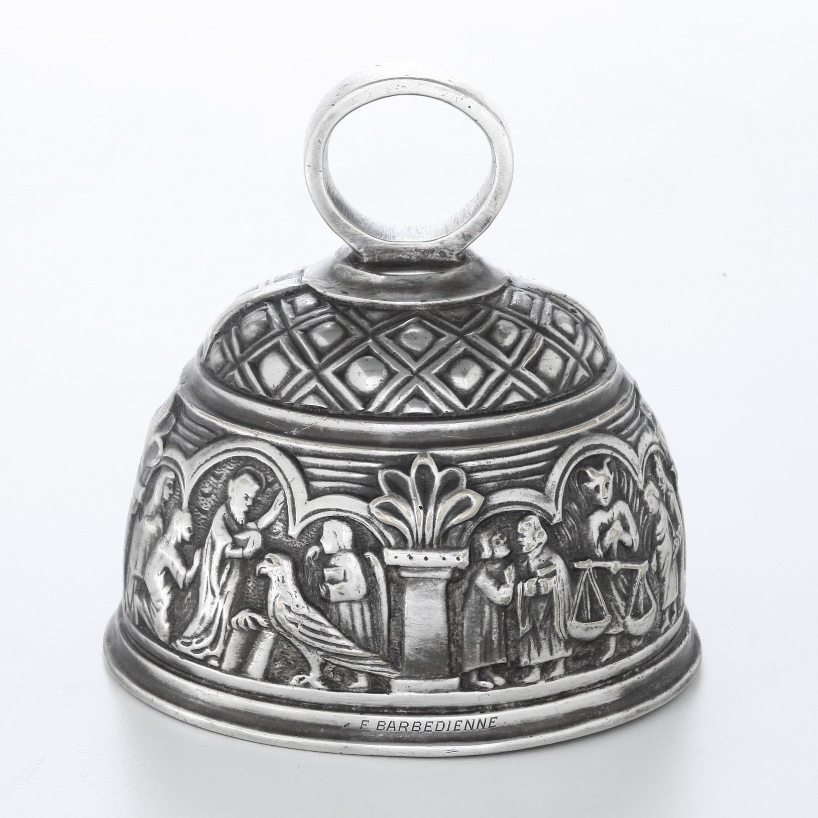 Campanello in metallo argentato firmato F. Barbedienne