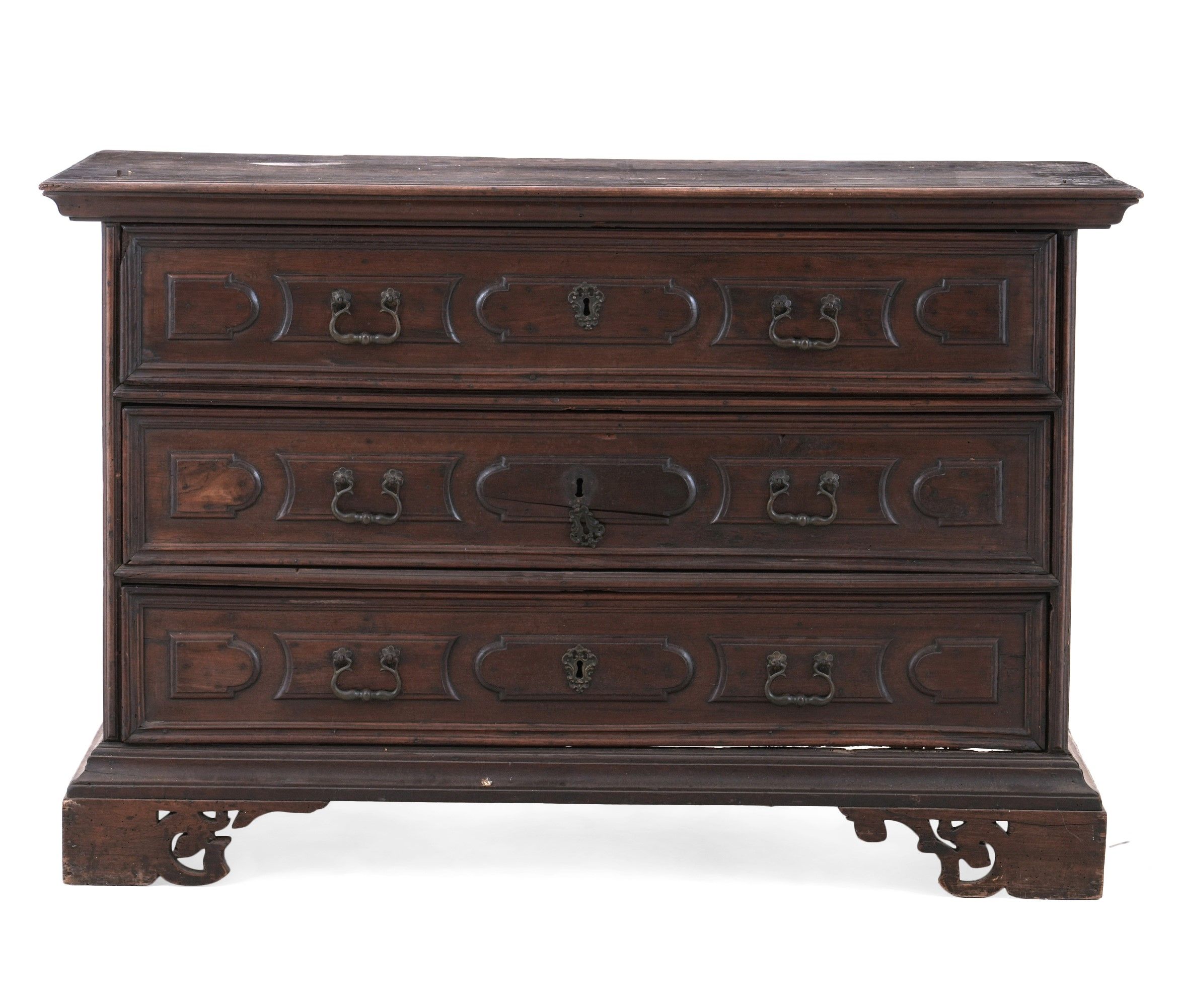 Cassettone con fronte a tre cassetti decorati da cartelle sagomate. Emilia, XVII [..]