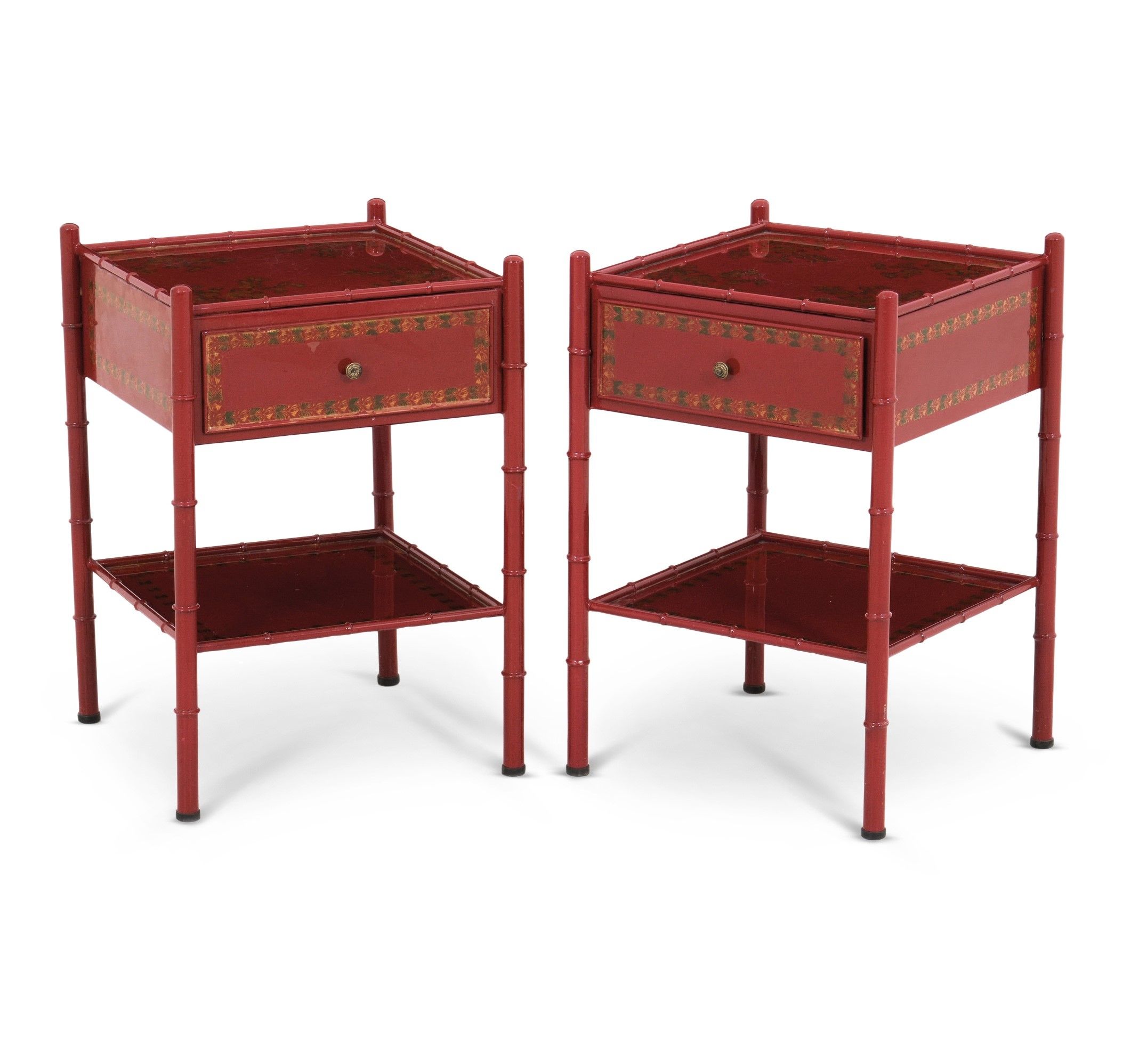 Coppia di comodini in metallo laccato a fiori