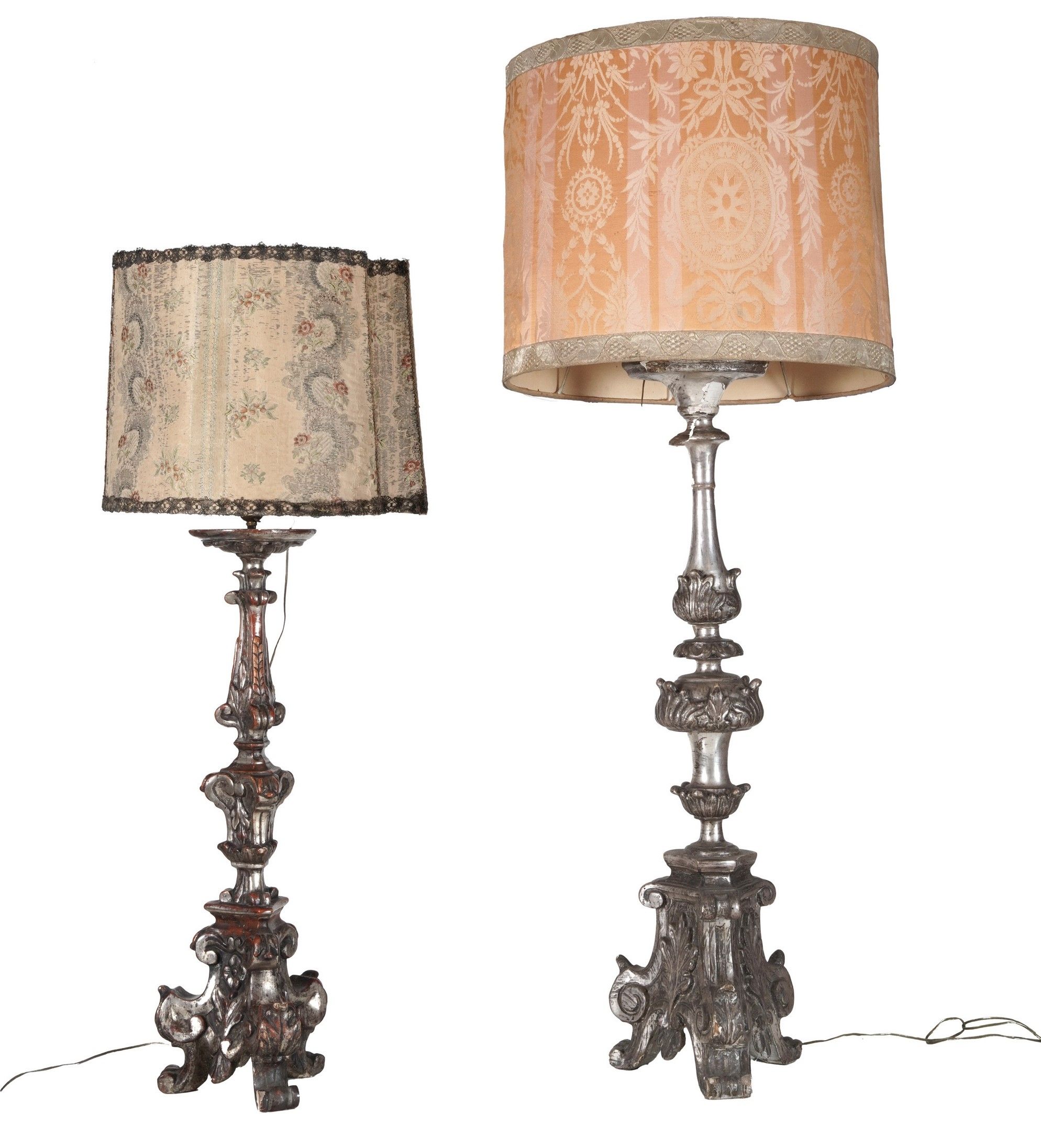 Due portaceri in legno scolpito e argentato. XVIII-XIX secolo