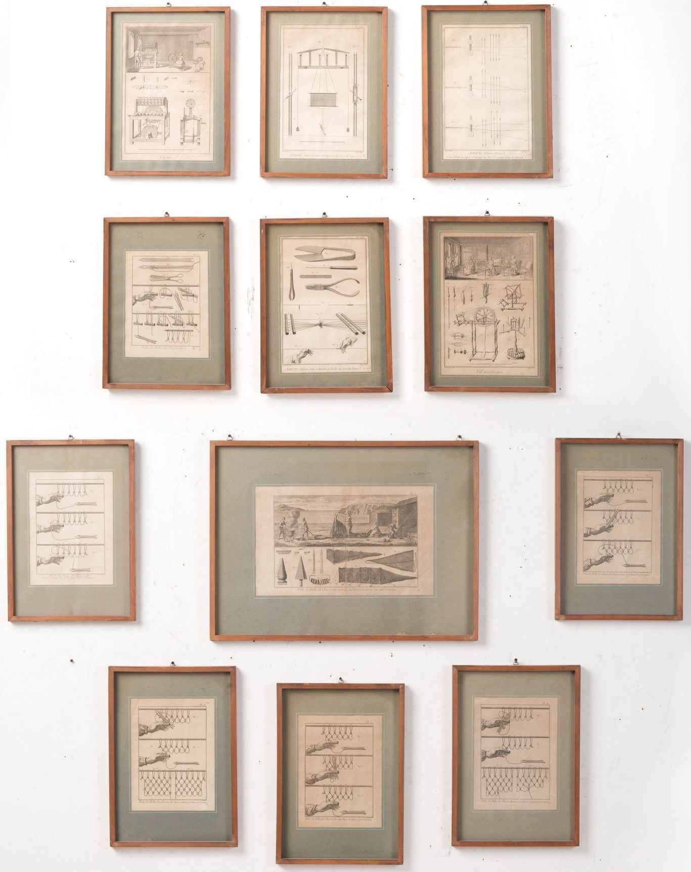 Gruppo di incisioni raffiguranti lavori e attrezzi riguardanti la tessitura