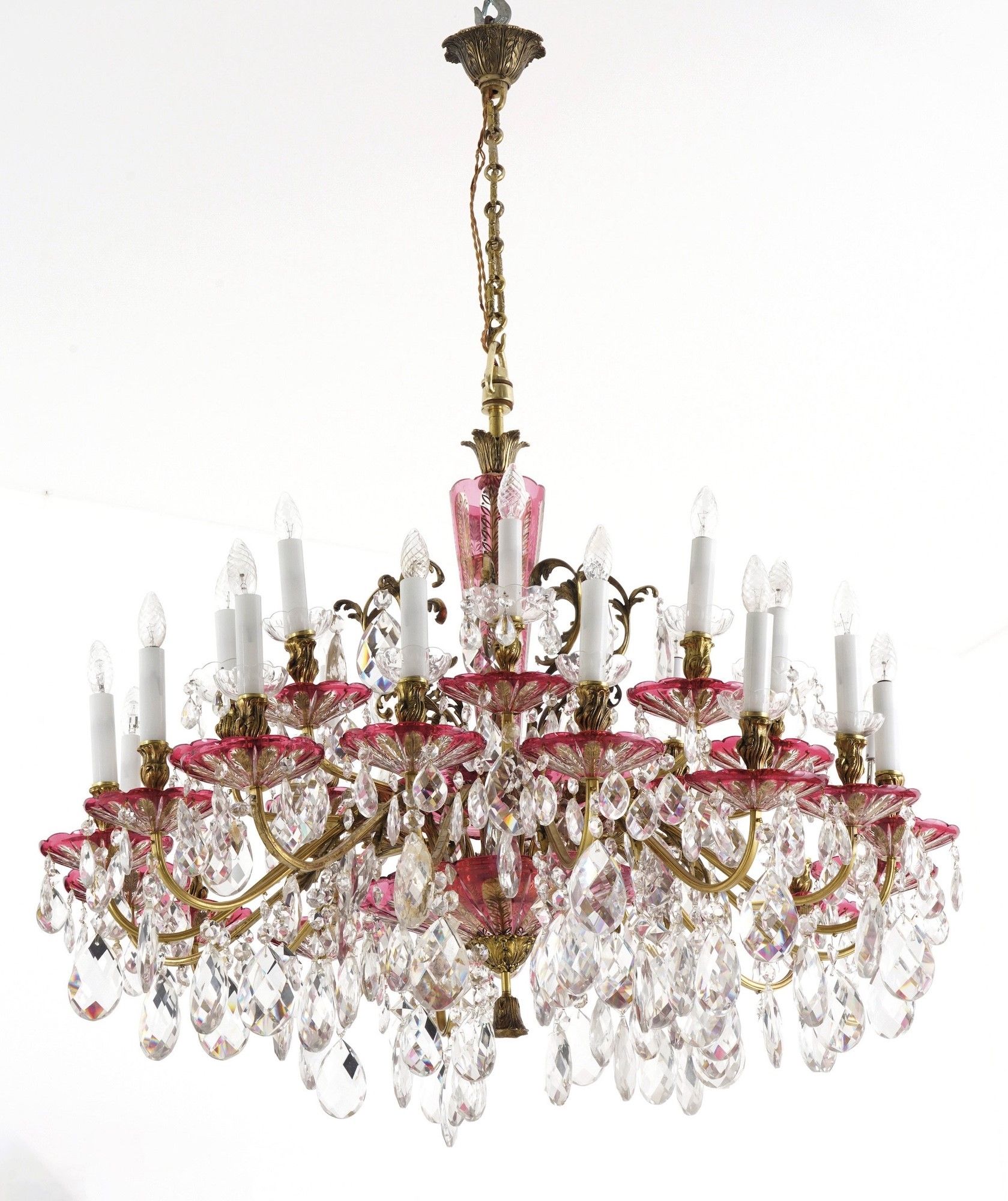 Lampadario in bronzo dorato e cristalli a 24 luci