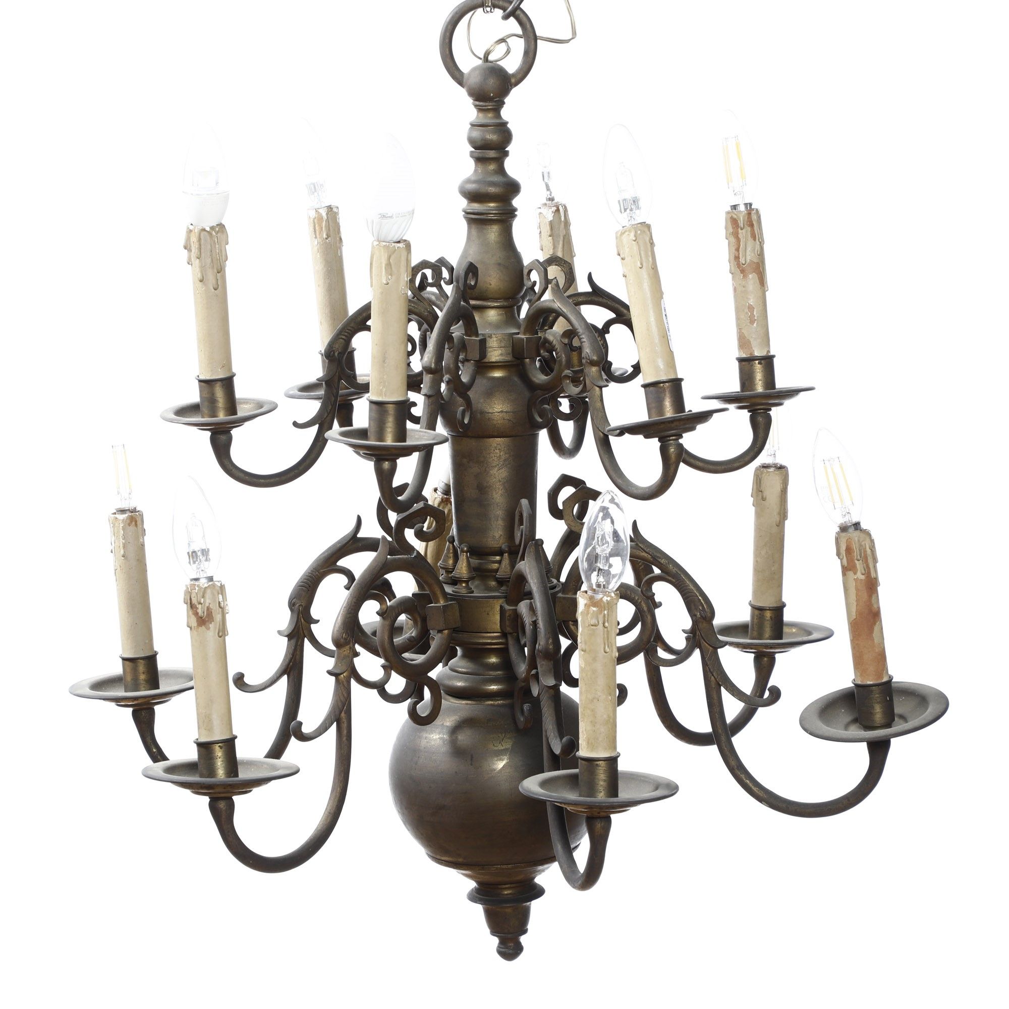 Lampadario in ottone a undici luci. Olanda, XIX secolo