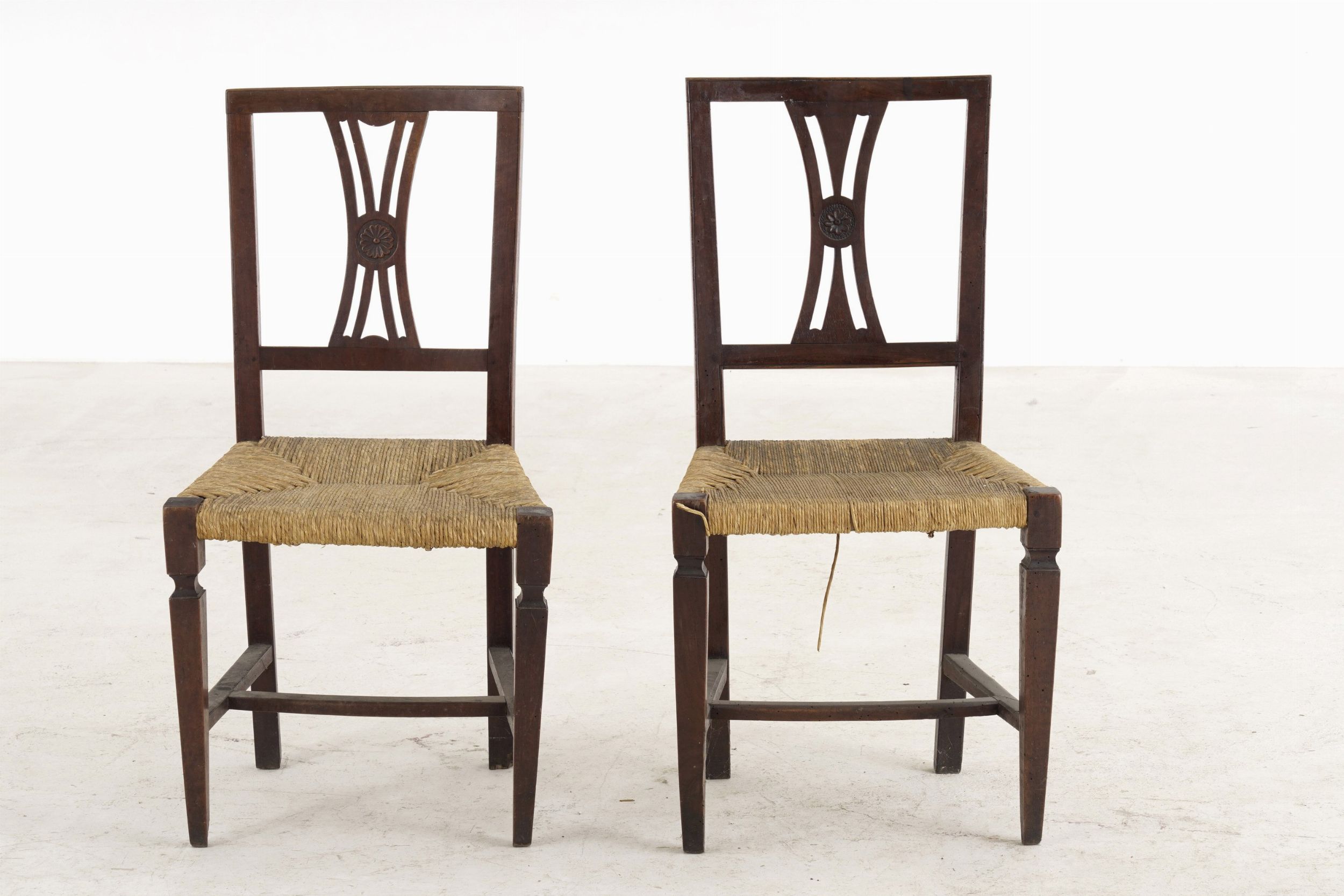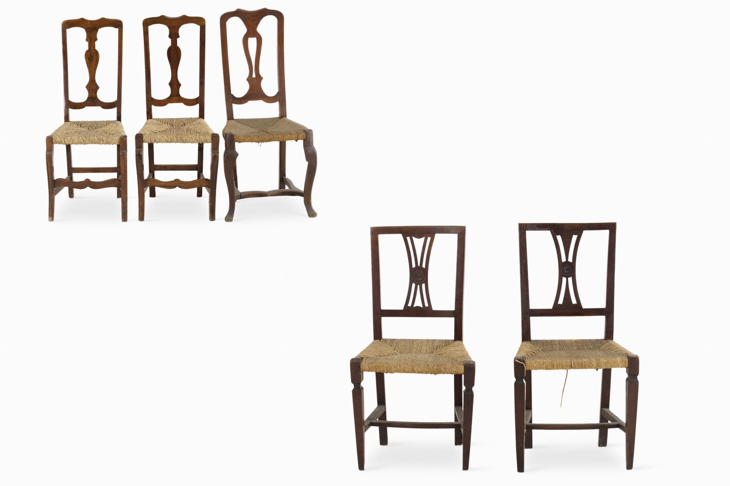 Lotto di 5 sedie con seduta impagliata. XVIII-XIX secolo