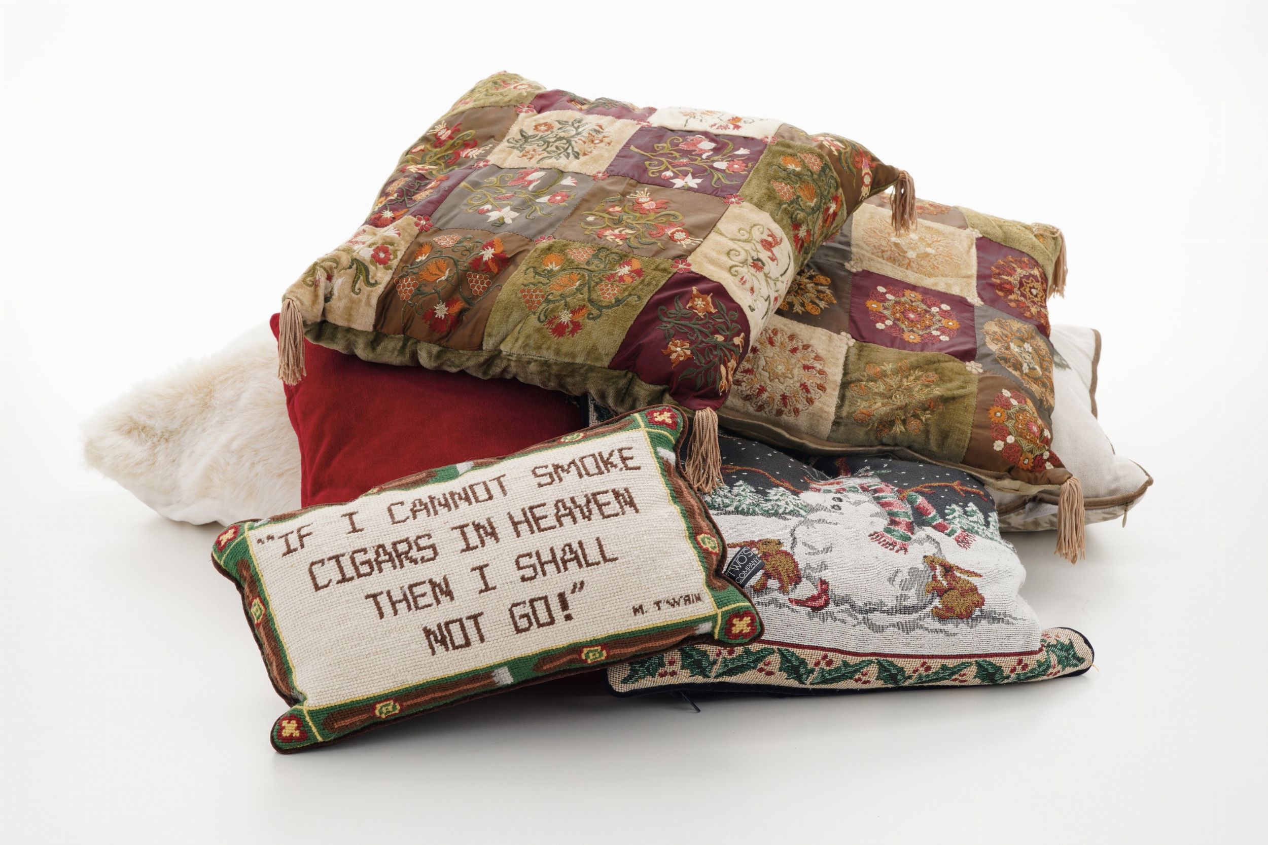 Lotto misto di cuscini in tessuti e fantasie diverse