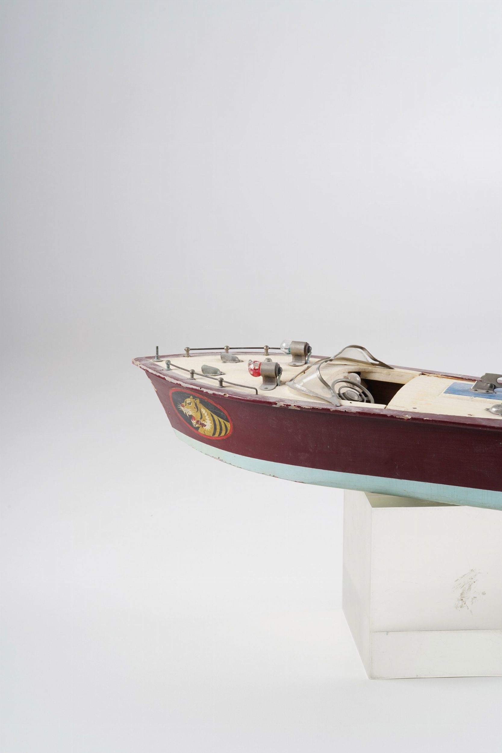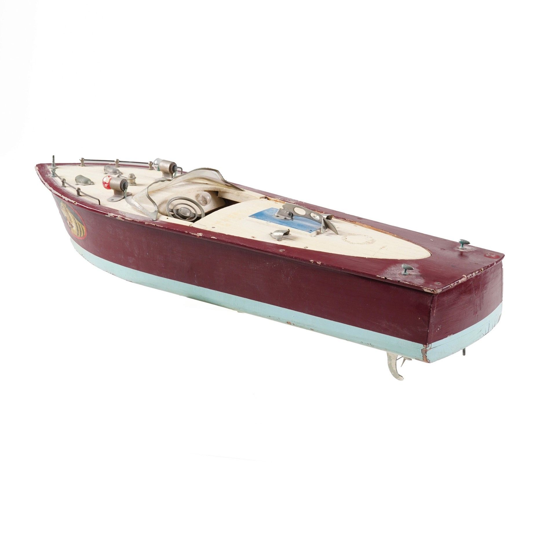 Modellino di motoscafo in legno. XX secolo