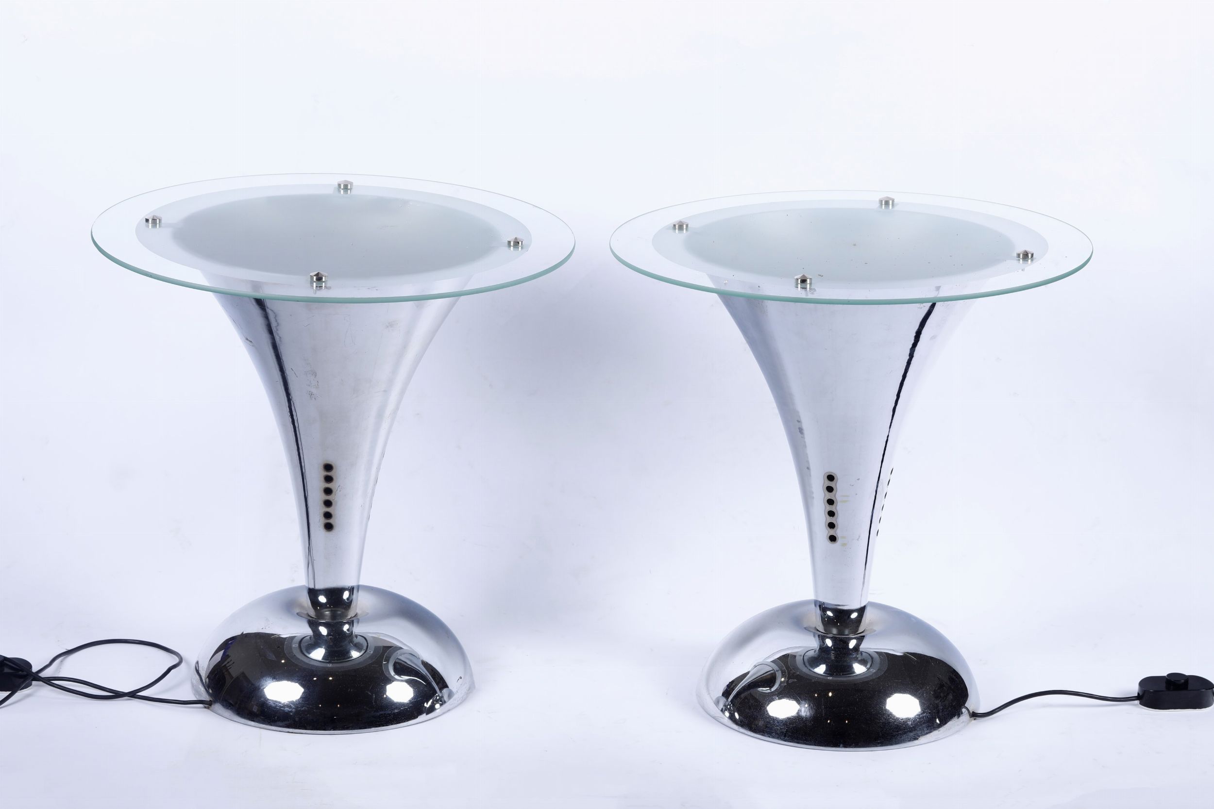 Coppia di tavolini in metallo con piano in vetro, XX secolo