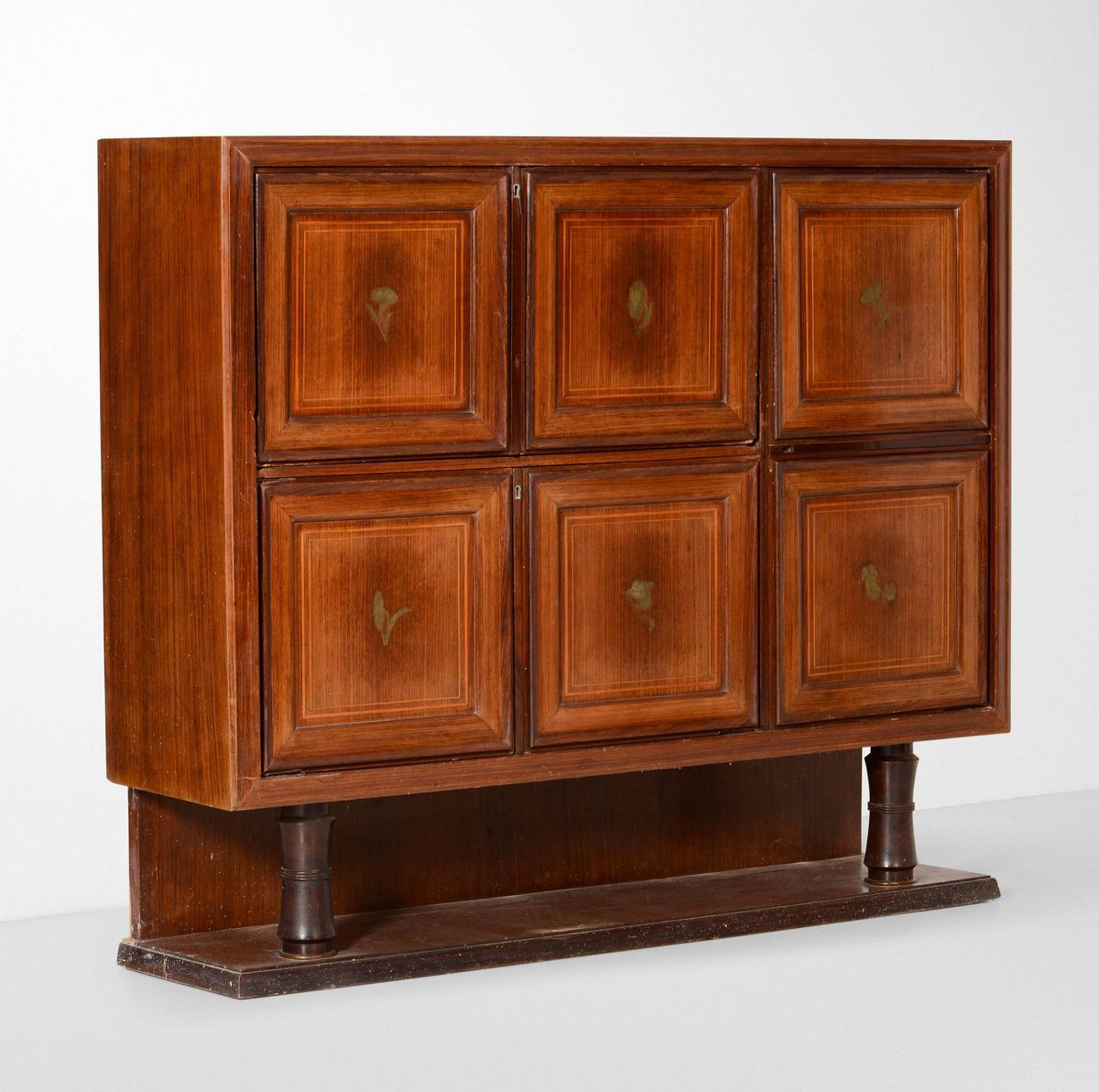 Mobile contenitore con struttura, sostegni e piano in legno con particolari in o [..]