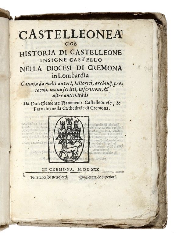 In-8° (mm 214x152). Stemma xilografico della città sul frontespizio, piccolo ritratto dell’autore inciso su rame entro medaglione. Alcune carte un po' ingiallite, una minima gora pallida al margine superiore della prima metà delle carte, ma buona copia non collazionata in barbe e in cartonato flessibile coevo (un po' sciupato).