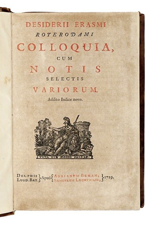 In-8° (mm 193x126). Frontespizio con marca xilografica stampato in rosso e nero. Fascicoli occasionalmente bruniti. Non collazionato. Vitellino coevo con triplice filetto dorato ai piatti, dorso liscio con tassello in marocchino rosso e fregi dorati, sguardie rinnovate.