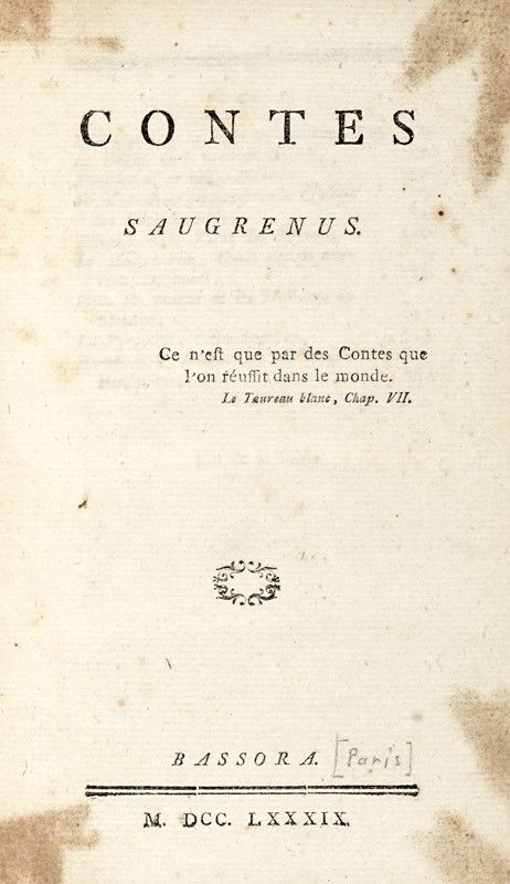 In-8° (mm 190x120). Con 1 tavola fuori testo, non collazionato. Occasionali macchioline, buono stato complessivo. Mezza pelle coeva con punte (sciupata), titolo in oro su tassello al dorso.