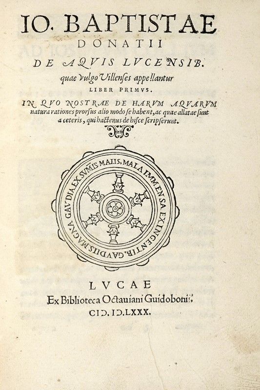 Sulle acque termali di Lucca, stampata dal Busdraghi, Lucae: ex biblioteca Octauiani Guidoboni, 1580. (Al colophon:) Lucae: apud Vinc. Busdracum, 1580.