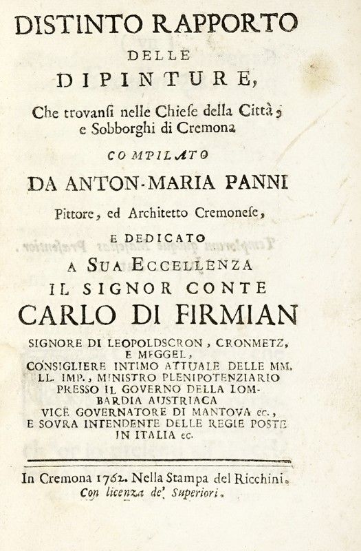 I dipinti di Cremona e dintorni nel Settecento, In Cremona: nella stampa del Ricchini, 1762.