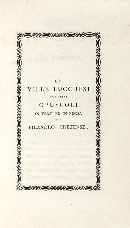 In-4° (mm 204x130). Frontespizio e testo entro cornice xilografica a motivi geometrici. Qualche lieve macchiolina occasionale, pagina vii-viii quasi sciolta. Non collazionato. Marocchino rosso moderno con decorazioni dorate, tagli spruzzati di rosso.