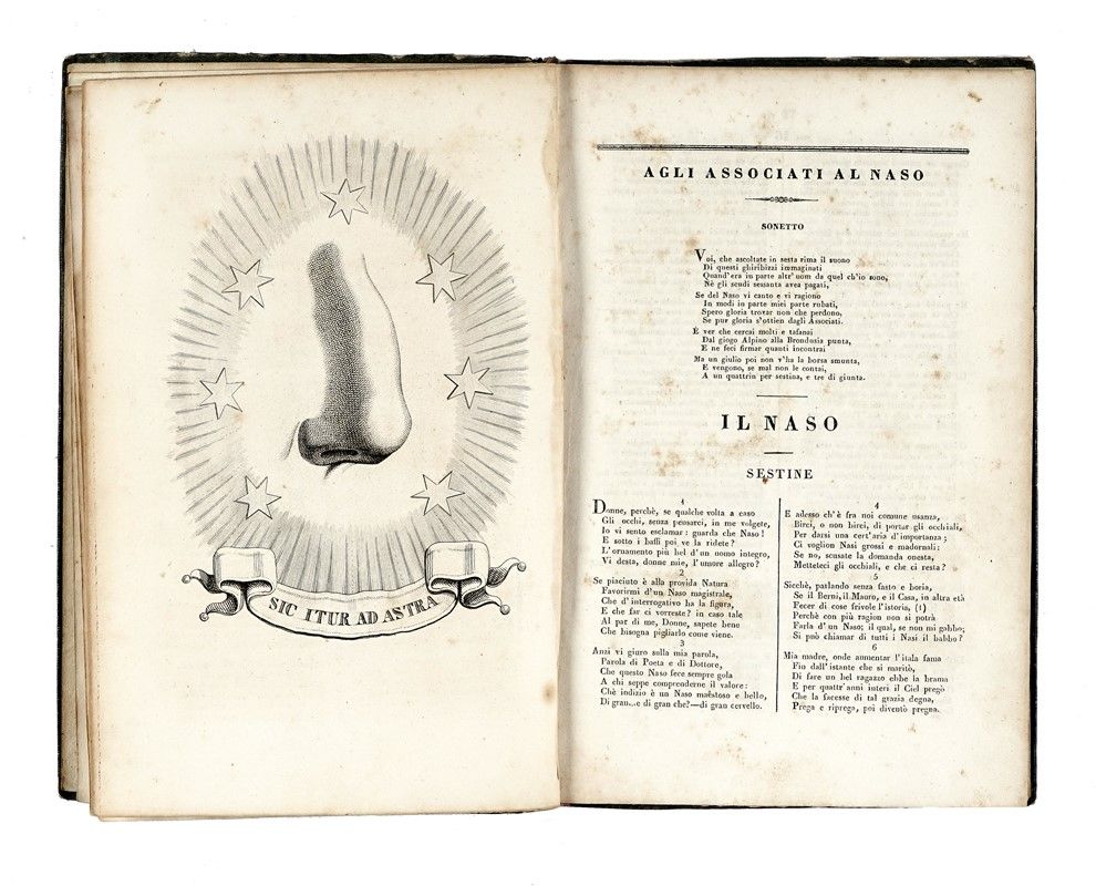 Compongono il lotto: 1) Fagiuoli Giovanni Battista, Prose toscane di Gio. Battista Fagiuoli accademico fiorentino... In Roveredo: per Francescantonio Marchesani, 1755; 2) Cionacci Francesco, Rime sacre del magnifico Lorenzo de' Medici il vecchio... Bergamo: appresso Pietro Lancellotti, 1760; 3) Boudier de Villemert, L'amico delle donne opera morale... In Lucca: per Giuseppe Rocchi 1763; 4) Poliziano Angelo, Stanze di messer Angelo Poliziano per la giostra del magnifico Giuliano di Piero de' Medici... Firenze: nella Stamperia Granducale, 1794; 5) Rinuccini Ottavio, La Dafne di Ottavio Rinuccini nuovamente stampata in occasione delle felicissime nozze del signor marchese Pier Francesco Rinuccini... Firenze: nella stamperia di Borgognissanti, 1810; 6) Redi Francesco, Bacco in Toscana... Firenze: All'insegna dell'Ancora, 1816; 7) Cavalcanti Giovanni, Della carcere dell'ingiusto esilio e del trionfal ritorno di Cosimo padre della patria… Firenze: nella stamperia Magheri, 1821; 8) Cellini Benvenuto, Vita di Benvenuto Cellini orefice e scultore fiorentino… Firenze: presso Guglielmo Piatti, 1829. In tre volumi; 9) Guadagnoli Antonio, Il gabinetto di Segato… Pisa: Tipografia Nistri, 1842; 10) Pellico Silvio, Dei doveri degli uomini: discorso ad un giovane… Firenze: presso Recordi, 1834; 11) Fanfani Pietro, Il Fiaccherrajo. Milano: Tipografia del Patronato, 1874; 12) Frizzi Giuseppe, Novella montana. Firenze: Tipografia A. Ciardelli, 1876; 13) Teatro comico fiorentino contenente XX. delle più rare Commedie... In Firenze: 1750. In sei volumi.