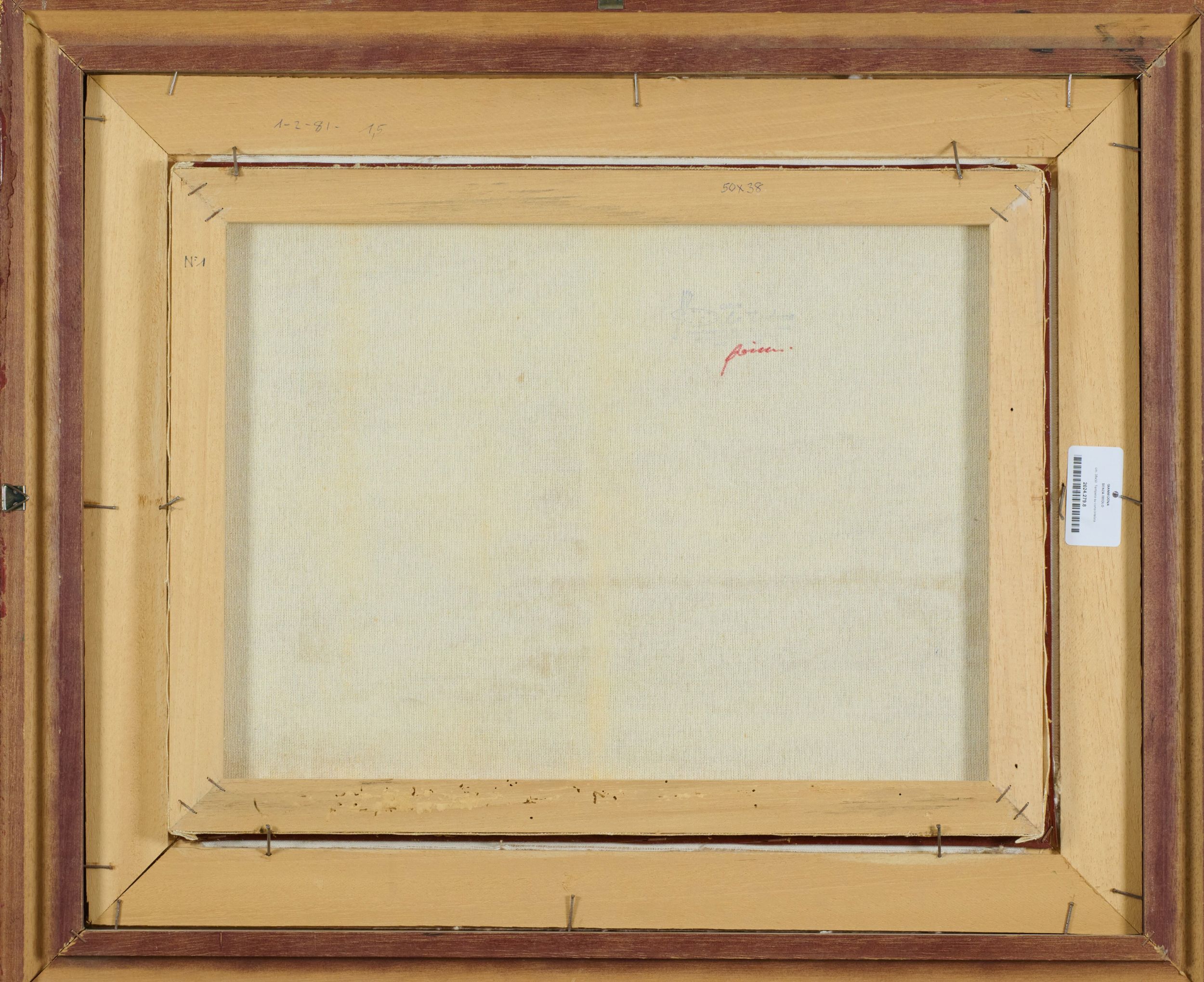 Firma in basso a destra. Sul verso: timbro galleria La Tavolozza.