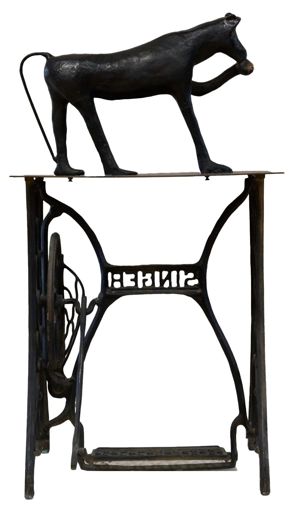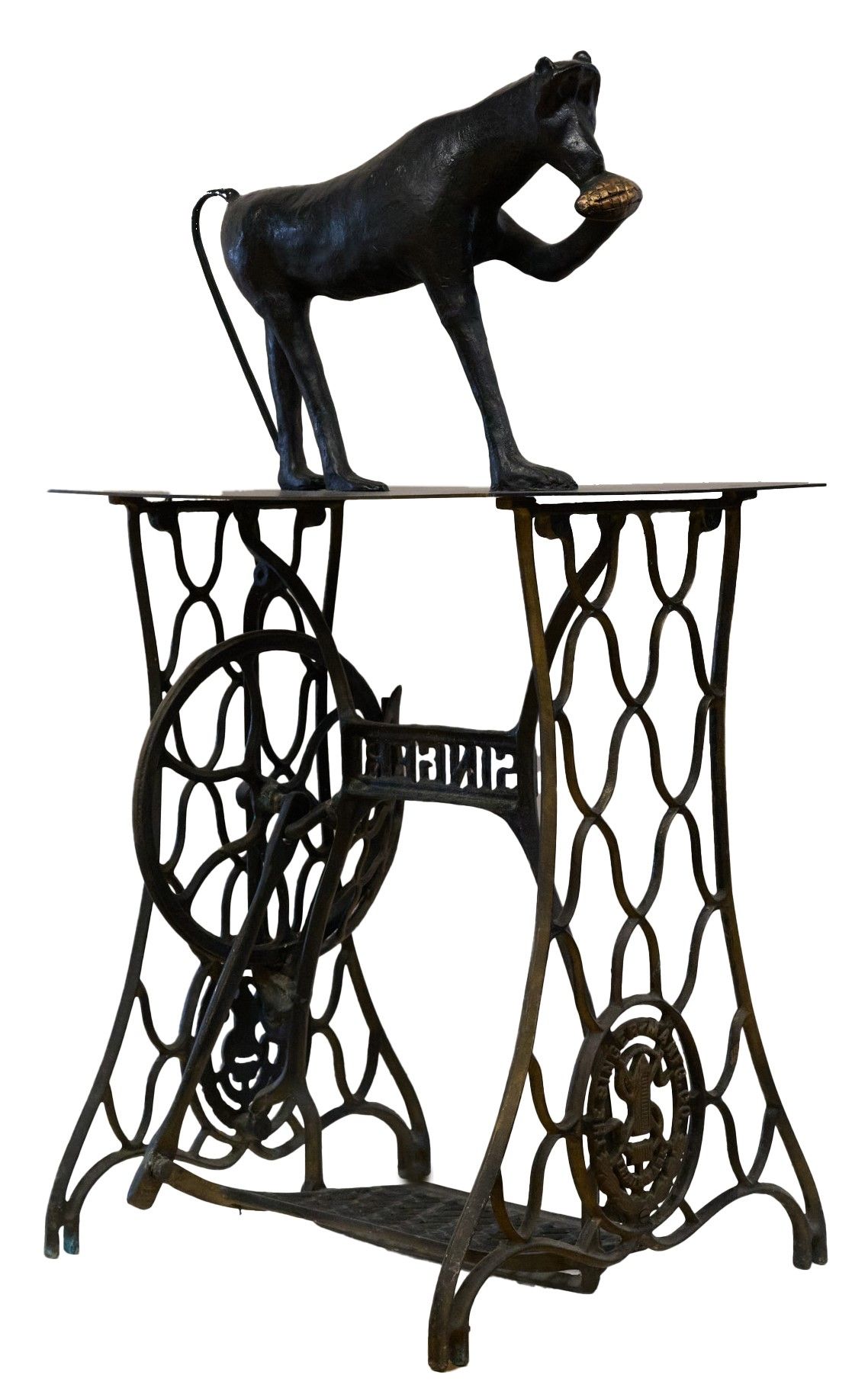 Scultura in bronzo con patina nera ed oro, cm. 110x59,5x46,5
