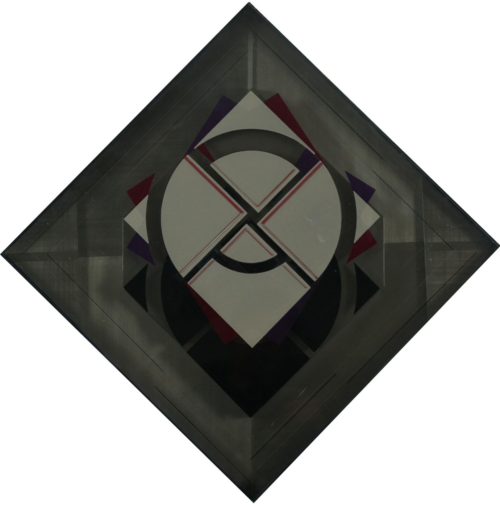 Serigrafia e tecnica mista su plexiglas applicato su tavola, cm. 50x50