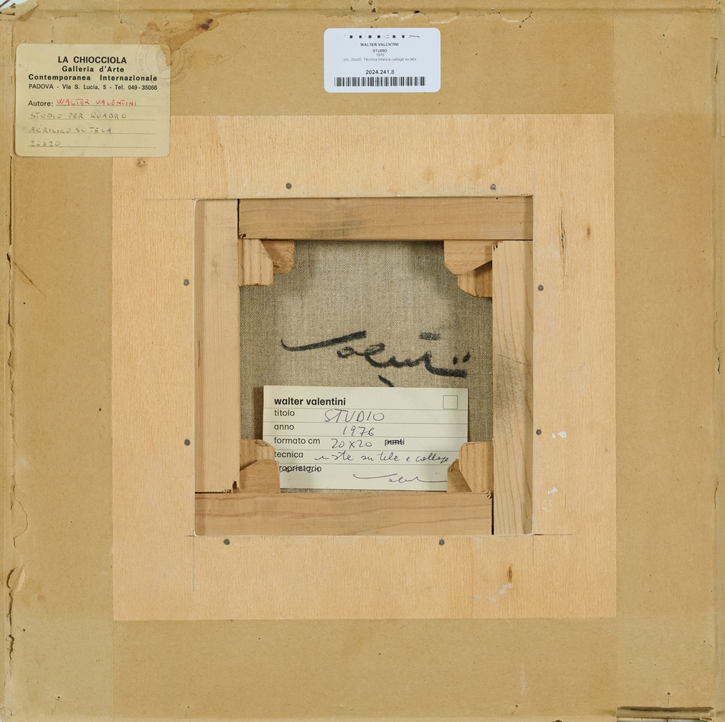 1976 Sul verso; firma ed etichetta dell'artista con firma, data e titolo. Etichetta galleria d'arte 'La Chiocciola', Padova.