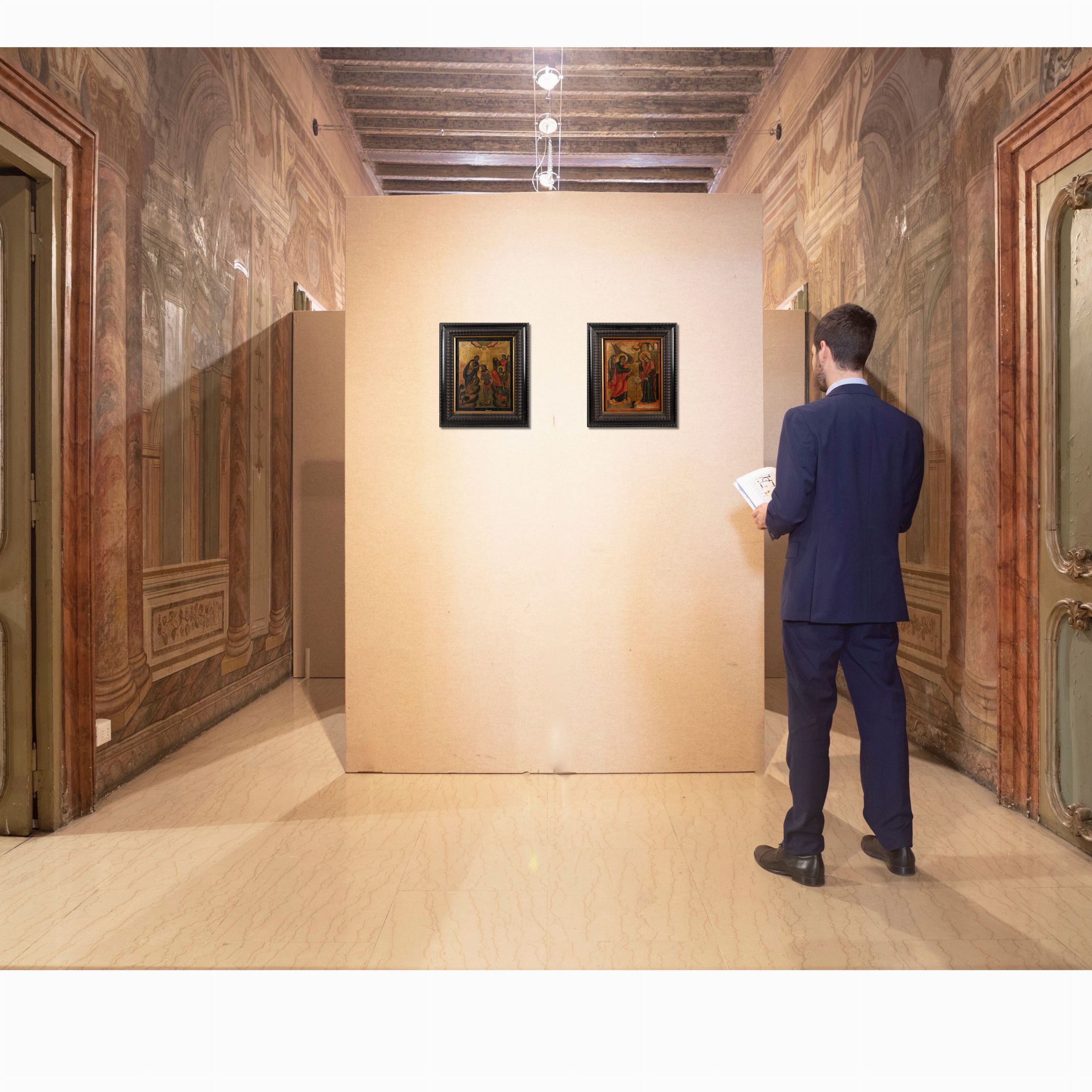 A) Battesimo di Cristo B) Annunciazione Coppia di oli su tavola su sfondo oro