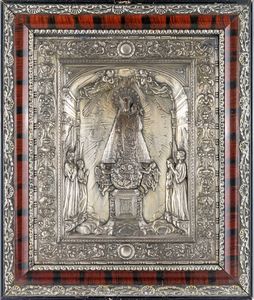 bassorilievo in metallo argentato, in cornice cm 57x48