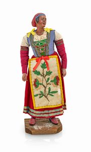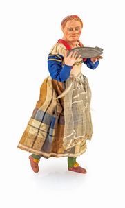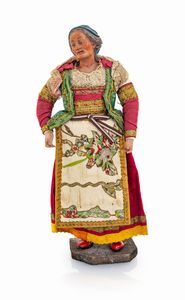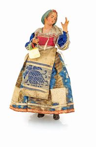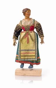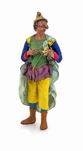 altezza cm 32,5 abbigliato con tunica gialla e corpetto verde rifinito nella parte inferiore da tessuto viola, [..]