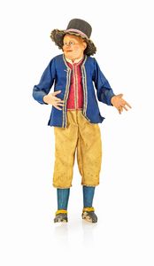 altezza cm 17 testa calva caratterizzata da folti ciuffi laterali, camicia bianca, giacca e pantaloni azzurri, [..]