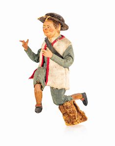 altezza cm 17 camicia beige e gilet in lana, pantaloni blu, ciocie ai piedi. Difetti e mancanze