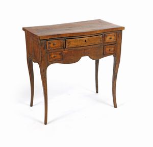 cm 110x80x50 piano sagomato sormontato da un'alzata con facciata concava chiusa da serrandine che celano due tiretti [..]
