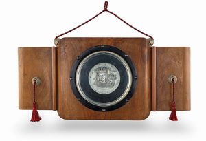 cm 30x20 con quadrante circolare in smalto bianco ad un unico foro di carica e indicazione oraria a numeri romani, [..]
