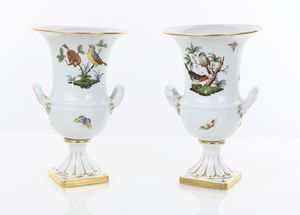 altezza cm 30 decorati in vivace policromia con figure in abiti settecenteschi, circondate da volute vegetali [..]