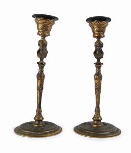 caratterizzati da busti femminili desunti dal repertorio classico, sulla cui testa posa il reggicandela; steli [..]