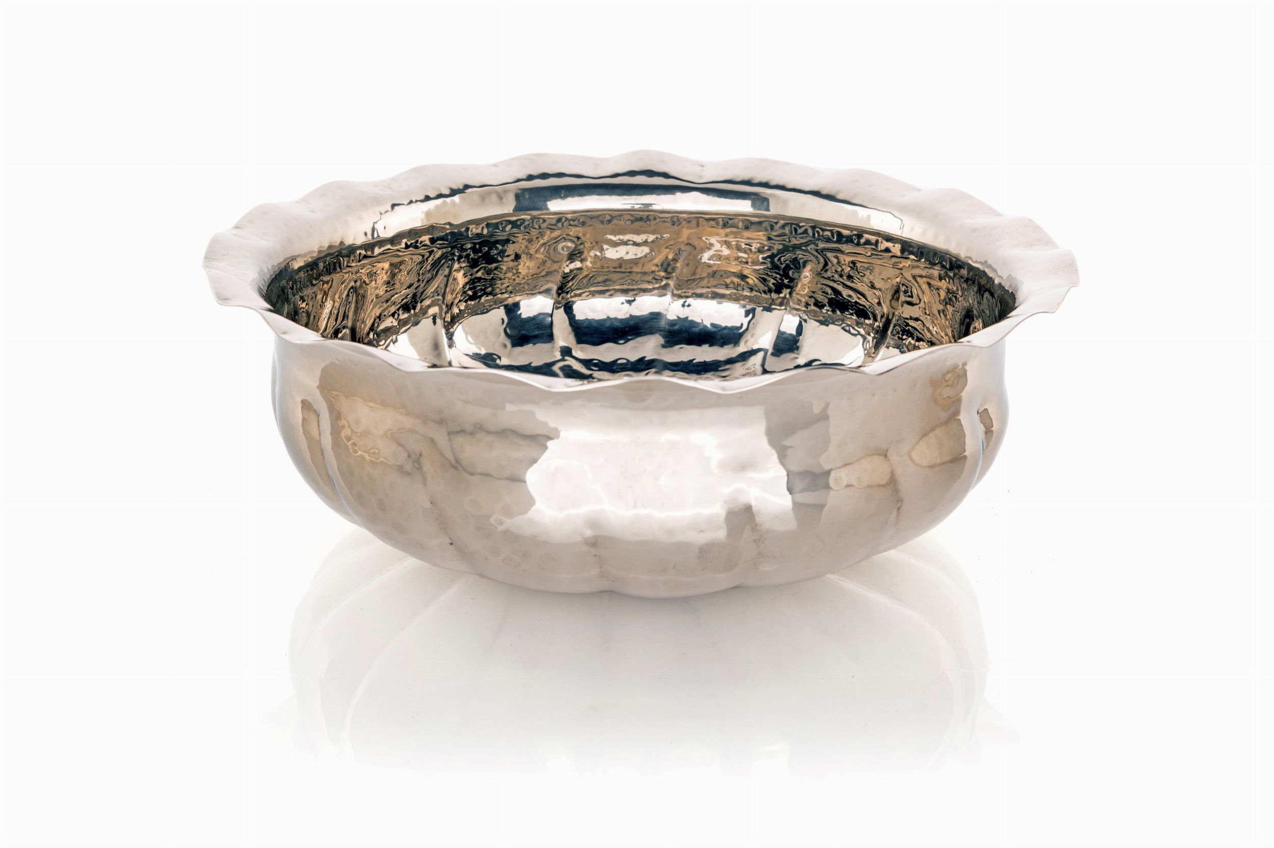Coppa centrotavola in metallo argentato battuto a mano