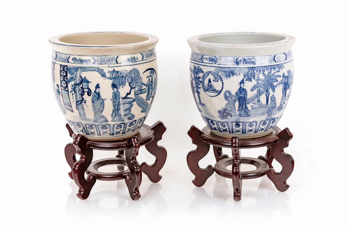 Coppia di cache-pots in ceramica, Cina