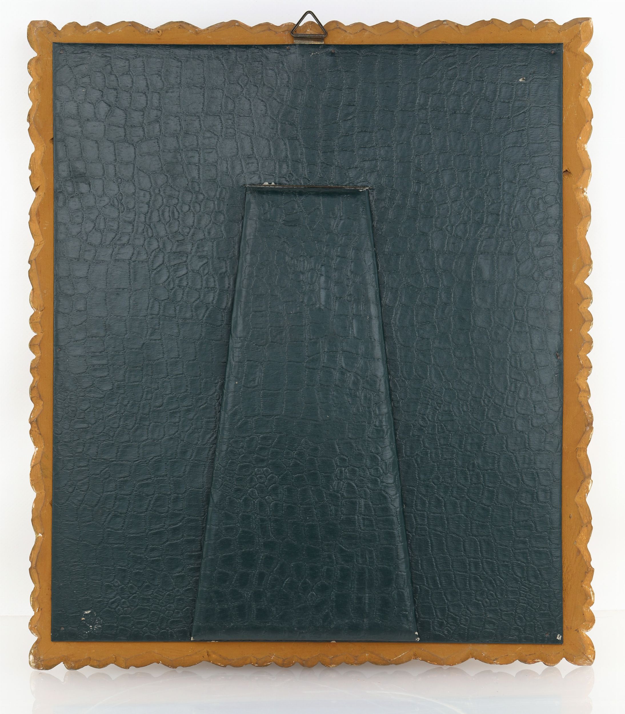 cornice da tavolo in legno dorato con profilo interno in cuoio con impressioni in oro
