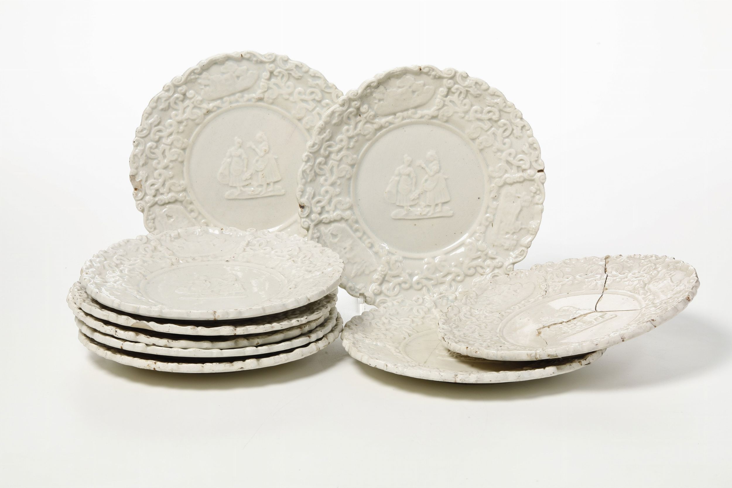 Cinque piatti in bassorilievo, XX secolo.