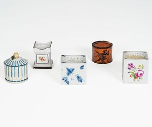 Cinque spargi polverino. Diverse manifatture europee tra cui Napoli, Doccia, XVIII [..]