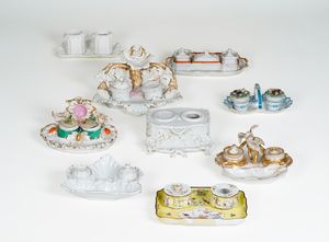 Sette servizi da scrittoio in miniatura, XIX secolo.
