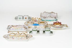 Sette servizi da scrittoio in miniatura, XIX secolo.