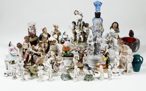 Lotto composto da 11 gruppi, 17 figurine, 3 vetri, 1 vasetto.